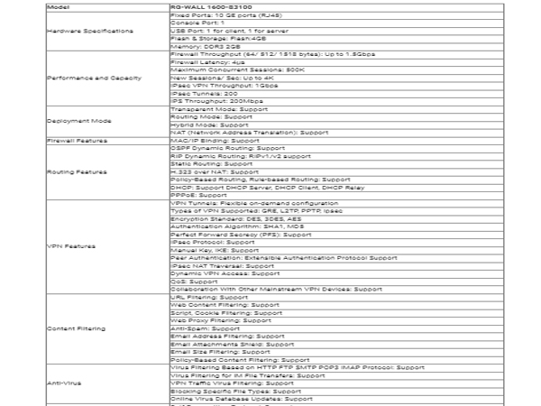 Thiết bị mạng HUB - SWITCH Ruijie RG-WALL 1600-S3200 (10 cổng GE, 1U) Ruijie RG-WALL 1600-S3200