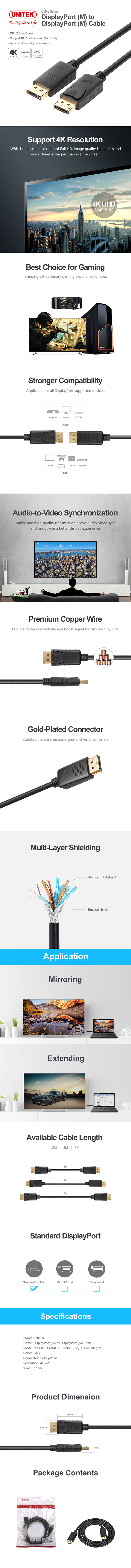 Cable DisplayPort->DisplayPort Unitek Y-C609BK Unitek tnd8046